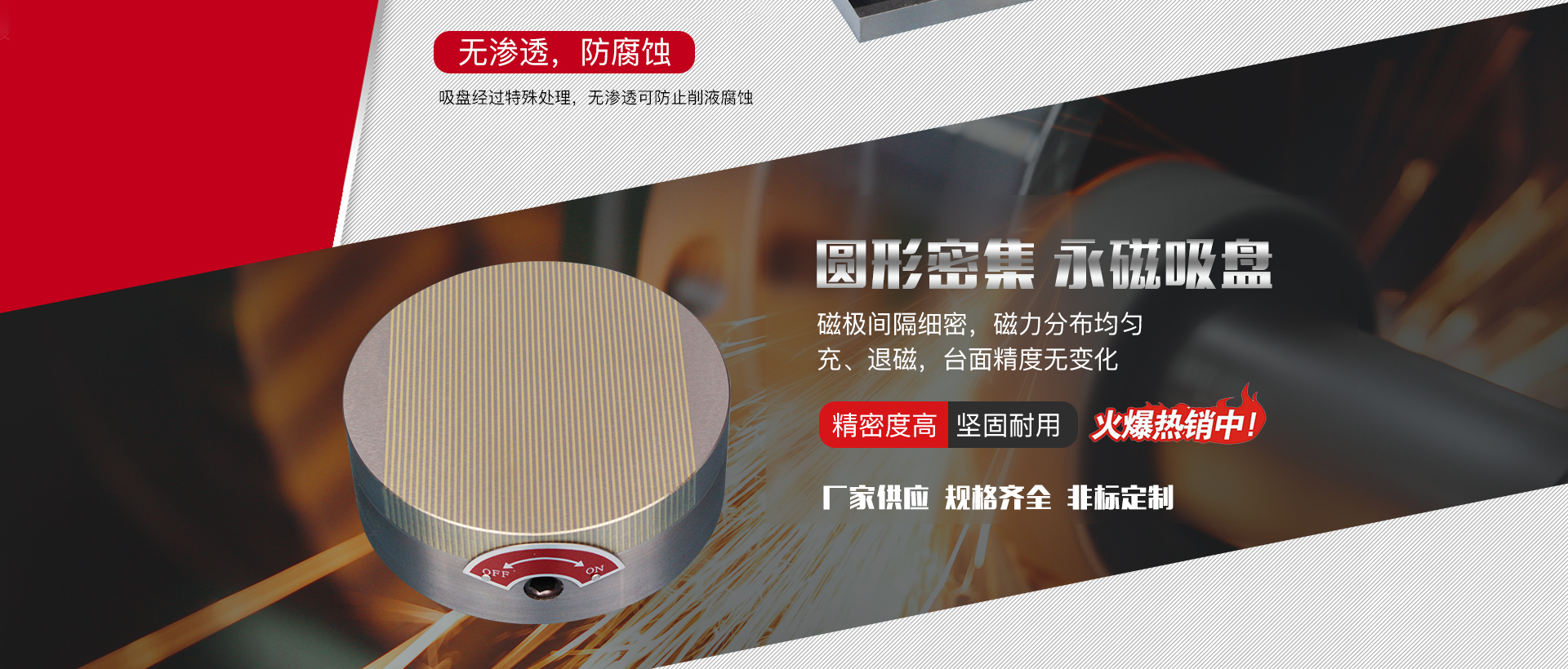 電永磁吸盤的界定:電永磁吸盤是融合電磁感應、稀土永磁特點的而開發(fā)設計的新式工裝夾具。選用脈沖電流"開和關"的新式磁力吸盤...